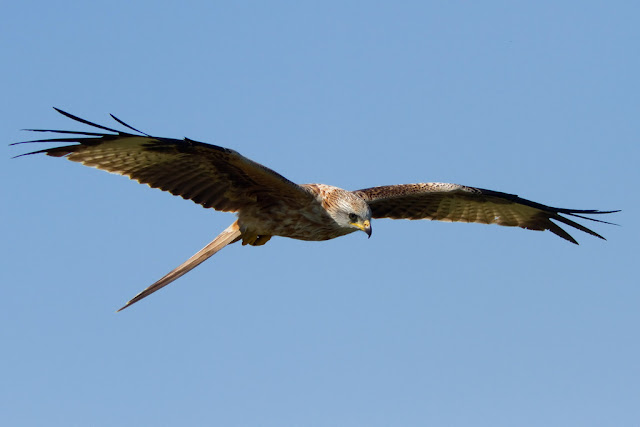 El milano real (Milvus milvus) es una especie de ave falconiforme de la familia Accipitridae. Es similar en aspecto al milano negro, del que se distingue por su cabeza de color gris plateado y su silueta. Los ejemplares que anidan en el norte de Europa se desplazan al sur para invernar; algunos de ellos atraviesan el estrecho de Gibraltar hasta llegar al norte de África. Su distribución llega hasta Canarias y las islas de Cabo Verde. El milano real tiene una longitud de 60 a 65 centímetros, una envergadura de alas de casi dos metros (190 centímetros) y un peso que oscila, desde los 900 gramos a los 1.200 gramos de peso. Su cola tiene una forma muy ahorquillada. Se diferencia fácilmente del milano negro, que es totalmente oscuro y tiene la cola menos ahorquillada. Caza aves y pequeños mamíferos, como liebres o ratas, también se alimenta de pájaros e invertebrados; incluso puede devorar carroña. Suele anidar en los árboles, donde confecciona un nido a base de ramas y hojas. La puesta consiste en un número que oscila, desde un solo huevo, hasta tres; tardarán en eclosionar unos treinta y cinco días aproximadamente. El macho suele reemplazar a la hembra en la incubación por pequeños periodos de tiempo, mientras ésta se alimenta. Wikipedia.